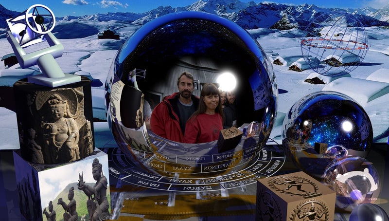 "Mogi" Massimo Vicentini (1956, riflesso al centro) è astronomo autodidatta, divulgatore e ideatore di strumenti. Con questi s'intendono sia dispositivi ottico-meccanici che multimediali, in tutti i casi per osservare o illustrare fenomeni e oggetti del cielo. All'attivo, un trentennio di lezioni di astronomia (e scienze connesse), per un totale di mezzo milione o più di studenti, e un pò di pubblico.